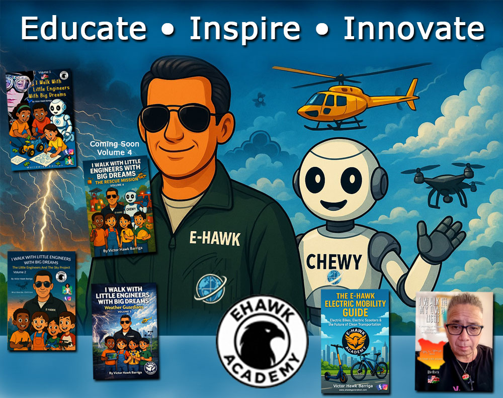 🌍 eHawk GenerationEducate • Inspire • InnovateAbout eHawk GenerationeHawk Generation was created with a bold vision: What began as a personal journey transformed into a global mission — to uplift, to teach, to encourage curiosity, and to show young people everywhere that big dreams are worth chasing. Captain Victor Hawk-Barriga, founder of eHawk Academy and creator of the eHawk Generation brand, brings together years of leadership, education, aviation knowledge, and real-world experience to deliver meaningful resources for all ages. Our mission is simple — to educate minds, inspire hearts, and innovate for the future. 📚 Published Works by Captain Victor Hawk-BarrigaBelow are the official books currently available through Amazon and select retailers. 🚀 The Children’s STEM Aviation SeriesI Walk With Little Engineers With Big Dreams™A 10-book educational adventure introducing children to aviation, weather, engineering, and teamwork — complete with TO-DO projects in every chapter. Available Now:Volume 1 – I Walk With Little Engineers With Big Dreamshttps://www.amazon.com/dp/B0G2BLM3HY Volume 2 – The Little Engineers and The Sky Projecthttps://www.amazon.com/dp/B0G46PMFYZ Volume 3 – Weather Guardianshttps://www.amazon.com/dp/B0G4GJ6LKY Coming Soon:Volume 4 – The Rescue Mission These books are perfect for: 🛫 Teen Series (Coming Soon)Aviator Cadet™ – Ages 13–18A powerful new series designed for teens interested in aviation, weather science, leadership, and advanced STEM training. Planned Titles Include: